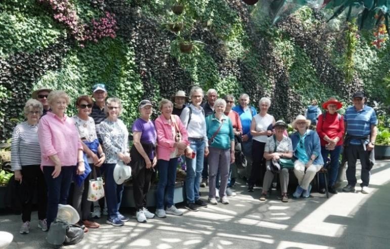 Twenty one walkers enjoyed the blue sky and sparkling blue water of the harbour, after coffee in the City, as we strolled through the gardens. Although many of the Spring flowers had finished, there were landscaped gardens of numerous native plants and planted garden beds of annuals still in full flower. After. cheese and biscuits in a shady corner we headed to the tropical leaf display in the Calyx which was spectacular.